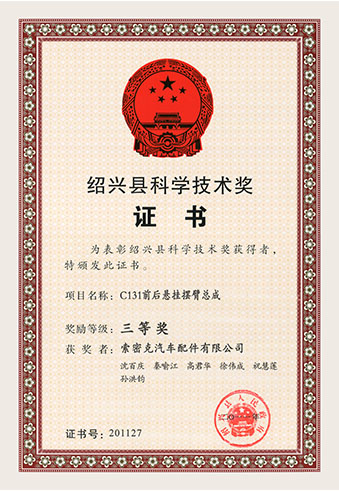 公司已先后通過(guò)IATF16949質(zhì)量管理體系認(rèn)證、ISO/14001環(huán)境管理體系認(rèn)證和OHSAS18001職業(yè)健康安全管理體系認(rèn)證。是“國(guó)家高新技術(shù)企業(yè)”“行業(yè)龍頭企業(yè)”和“全國(guó)百家優(yōu)秀汽車零部件供應(yīng)商”。